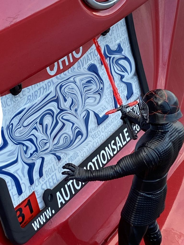 Several elements here. First, all the electric lights are off. The main light source is my iPhone, which is off to the side, and a lighter. I set the camera on manual with the shutter set for 10 seconds. I then waved the lighter around the scene. I thought about trying to edit out my hand, but it would probably take more time than I want to spend, and it kind of adds to the effect. Another cool effect that I didn’t think about is the sparks from the arc igniting the lighter.